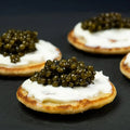 French cocktail blinis crafted using a traditional recipe for a light, delicate texture and subtle flavor. These bite-sized blinis provide the ideal base for caviar, smoked fish, and refined hors d’oeuvres, allowing premium toppings to shine without overpowering them.
