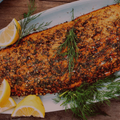 A bold and savory interpretation of a smokehouse classic. This Atlantic Salmon is hot-smoked over maple wood and finished with a robust crust of cracked black peppercorns for a sophisticated, warming heat. Tender, flaky, and locally crafted in small, artisanal batches.