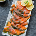 A tribute to Scandinavian tradition. This premium Atlantic salmon is hand-cured with a delicate blend of sea salt, brown sugar, and aromatic fresh dill. Slow-smoked over natural maple wood, the infusion of herbs perfectly complements the rich, buttery profile of the fish, resulting in a sophisticated balance of garden-fresh notes and subtle sweetness.