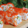 Наш оранжевый тобико получен из икры летучей рыбы высочайшего качества, что гарантирует свежесть и вкус. Каждое зерно идеально круглое, красиво оранжевого цвета и готово добавить потрясающий цвет и тонкий вкус любому блюду или суши-роллу. Продукт на 100% свежий, пастеризованный и никогда не замороженный.